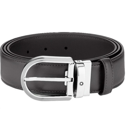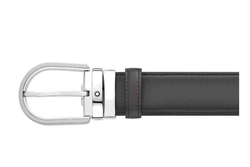Кожаный ремень с пряжкой в форме подковы серого цвета 35 мм от магазина премиальных ручек Premium Pens в Красноярске.